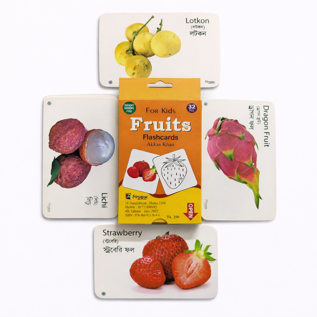 Fruits Flash Cards দিয়ে বাচ্চারা বিভিন্ন ফলের নাম ও ছবি সহজে চিনতে শিখবে।